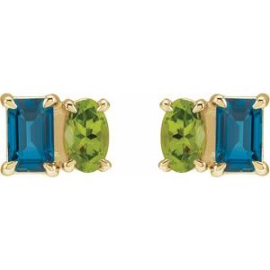 London Blue Topaz & Peridot Two-Stone Stud Earrings