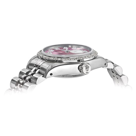 Pre-owned Rolex Independently Certified Women's Stainless Steel Datejust Jubilee with Rose Diamond Dial and Diamond Bezel