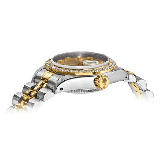 Pre-owned Rolex Independently Certified Women's Two-tone Datejust Jubilee with Champagne Diamond Dial and Diamond Bezel