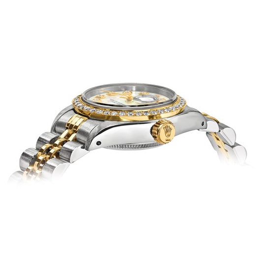 Pre-owned Rolex Independently Certified Women's Two-tone Datejust Jubilee with Mother of Pearl Diamond Dial and Diamond Bezel