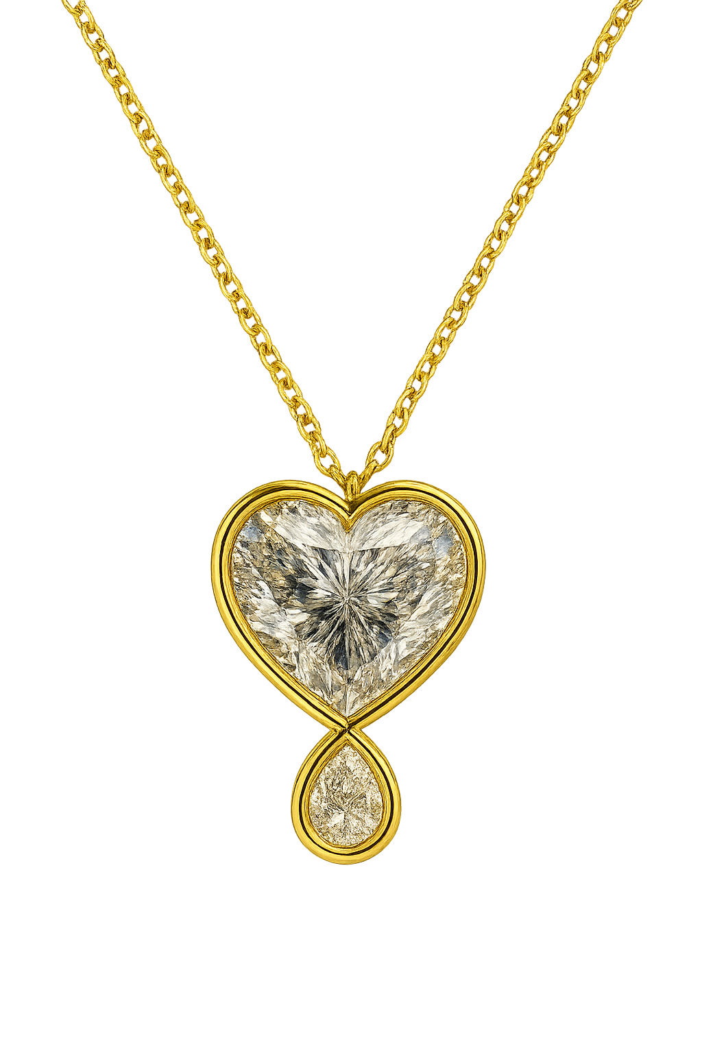 Each piece is custom made with intention and care. Crafted in 14K gold and set with a brilliant lab-grown diamond heart and pear, every piece is designed to symbolize both love and impact.